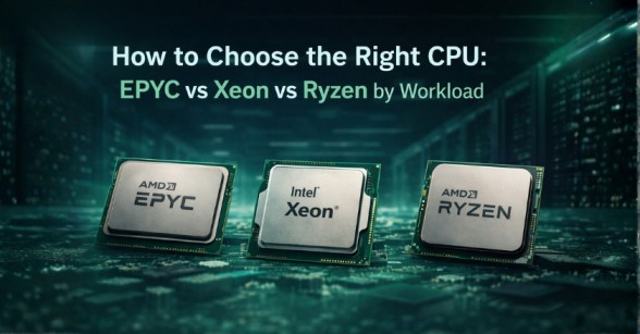 This article compares AMD EPYC, Intel Xeon, and AMD Ryzen by architecture, benchmarks, and real-world workload fit, with the understanding that performance, memory channels, PCIe lanes, and instruction-set support vary by CPU generation, not just by family.